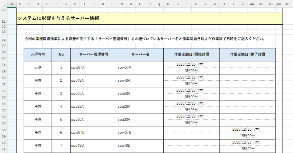 「サーバー管理台帳」から該当する日付の「作業前のノードID」を取得して「実機環境作業手続き申請書」に出力して保存されるところまでを実現いたしました。