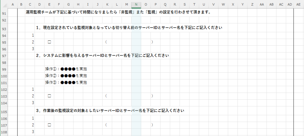 「1.現在設定されている監視対象となっている」の各項目に行を自動で挿入する処理を追加しました。